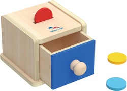 Dojčenská pokladnička je vynikajúca pomôcka inšpirovaná Montessori vzdelávaním pre nácvik jemnej motoriky a koordinácia ruka-oko najmenších detí. Dievčatká a chlapci vhadzujú drevené žetóny otvorom na hornej strane pokladničky a keď otvoria šuplík, nájdu ich vo vnútri. Vhadzovaním žetónov trénujú úchop a učia sa princípom príčiny a následku. Hračka je vyrobená z vysoko kvalitných materiálov s certifikáciou FSC®.Montessori vzdelávaciu metódu vyvinula talianska lekárka a pedagogička Maria Montessori. Táto metóda sa zameriava na samostatnosť, praktické učenie a rešpekt k prirodzenému vývoju dieťaťa.