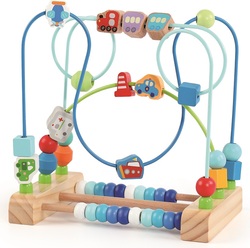 Labyrint na drevenom podklade pomáha deťom nielen sa zoznamovať s farbami, ale predovšetkým trénovať jemnú motoriku pri posúvaní korálikov. Vďaka dostatočnému množstvu týchto rozmanitých korálikov, medzi ktorými nájdete veselé obrázky dopravných prostriedkov, je možné hračku využiť aj k edukatívnej hre a pomaly u našich ratolestí vytvárať pozitívny vzťah k učeniu a počtu.