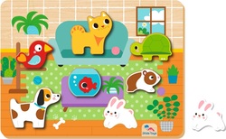 Aký to krásny pohodový deň. Poďme sa hrať s miláčikmi. Toto vkladacie puzzle prináša skvelú možnosť, ako u našich najmenších trénovať jemnú motoriku, trpezlivosť a spoznávanie zvieratiek. Skladá sa zo základne a 7 odnímateľných dielikov. Hračka je vyrobená z kvalitného FSC dreva. Má krásne ilustrácie, vďaka ktorým môže tiež poslúžiť ako milá dekorácia v detskej izbičke.