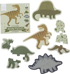 Sada piatich puzzle s dinosaurami je špeciálne navrhnutá pre deti od 2 rokov. Každá skladačka sa skladá z 3 až 5 veľkých dielikov. Puzzle sú vyrobené z pevného kartónu, sú dostatočne veľké pre malé detské ručičky.