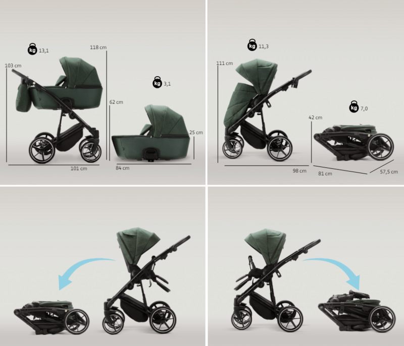 - rozmery zloženého kočíka: 81 x 51 x 42 cm (D x Š x V)