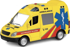 Ambulancie na zotrvačník so svetelnými a zvukovými efektmi s otvárateľnými prednými aj zadnými dverami.