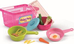 Košík s vekom, vybavený príslušenstvom do kuchyne.