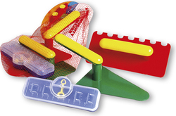 3-dielna súprava plastového murárskeho náradia pre každého malého murára. Murárska lyžica, hladidlo a vodováha.Vyrobené z kvalitných plastov v Taliansku.