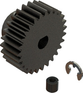 Tuningový diel pre RC modely áut Arrma 3S 4WD Bigrock, Granite, Senton, Typhon: pastorok 27T 0.8M Safe-D5. Otvor pre hriadeľ s plôškou v tvare D zaistí pevné spojenie aj keď sa uvoľní pastorok.