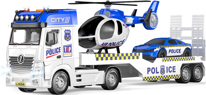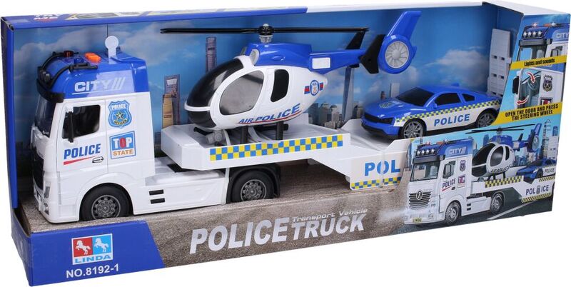 Auto polícia ťahač 55 cm a helikoptéra s efektmi set