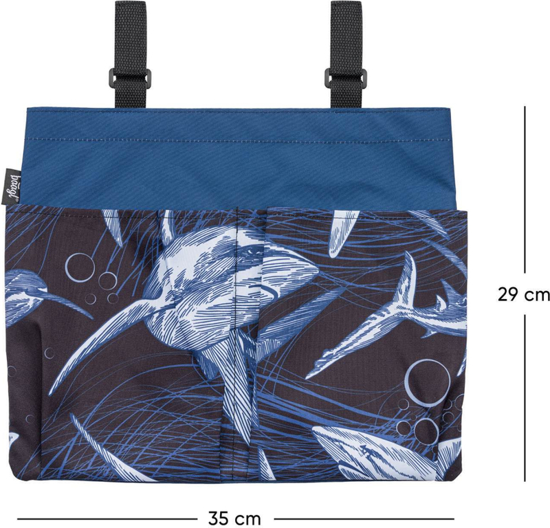 Organizér na školskú lavicu s pútkami na suchý zips pre uloženie školských pomôcok a ďalších potrieb.