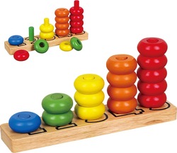 • Naskladaj drevené kolieska na seba podľa uvedených čísel - učenie čísel pomocou farieb.