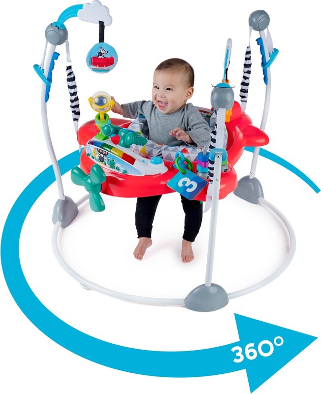 - skákadlo Baby Einstein Ocean Explorers Airplane Adventure s motívom lietadla, odmeňuje skoky dieťaťa hudbou a svetlom a rozvíja tak jeho hrubú motoriku