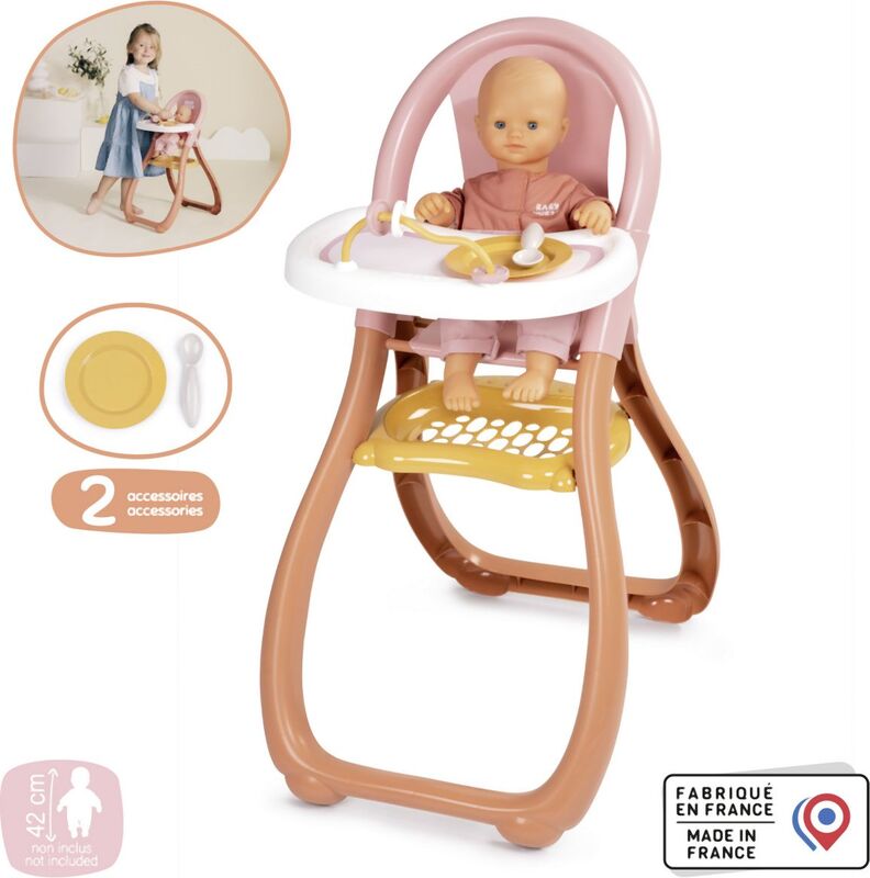 Vďaka širokému otvoru je možné bábiku ľahko umiestniť do vysokej stoličky. Úložný priestor pod sedadlom ponúka priestor pre ďalšie príslušenstvo.