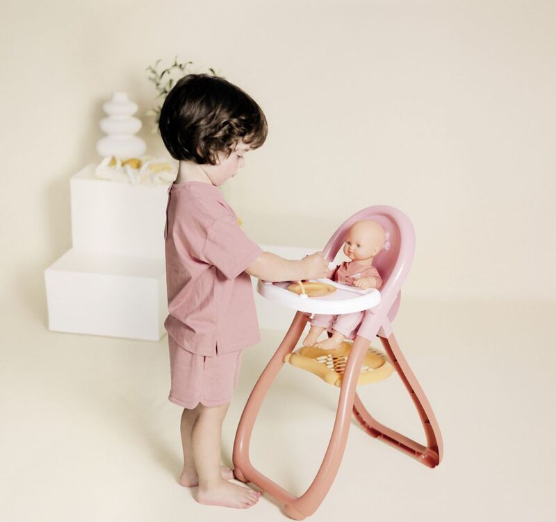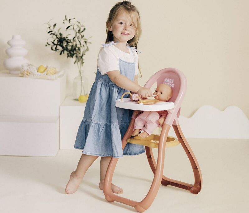 Vysoká stolička pre bábiky Baby Nurse s podnosom, tanierom a lyžičkou.