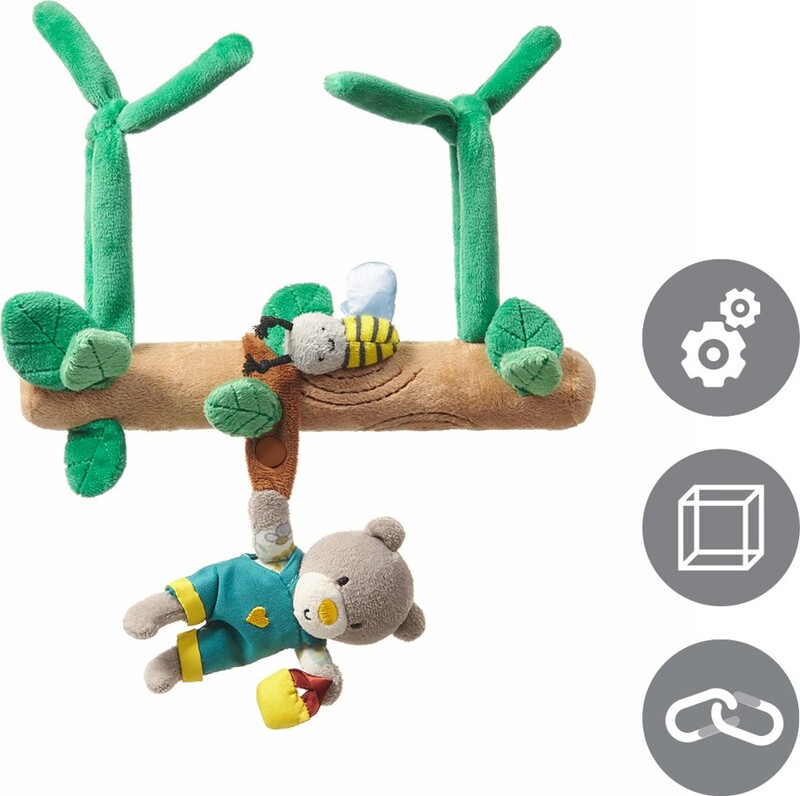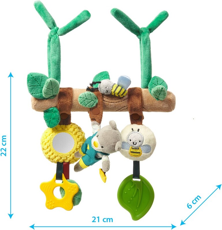 Závesná hračka záhradník Teddy zoznámi vaše dieťatko s rozmanitým svetom farieb, zvukov a tvarov. Vďaka jednoduchému spôsobu upevnenia ju zavesíte na akýkoľvek typ postieľky, autosedačky alebo kočíka, čím môže sprevádzať vaše dieťatko aj pri cestovaní a prechádzkach.