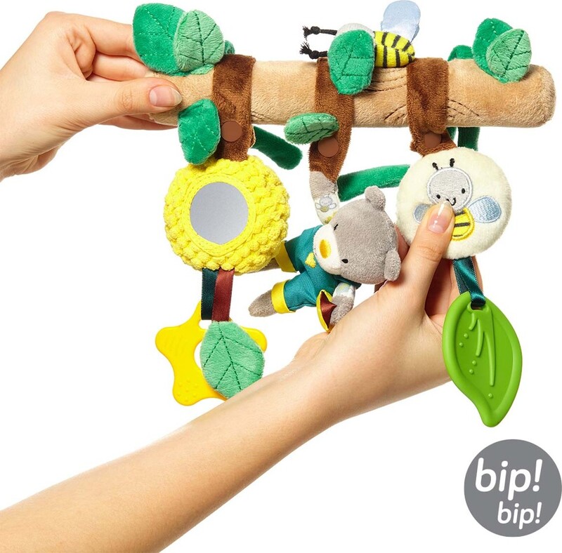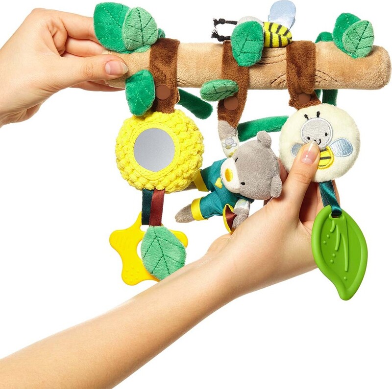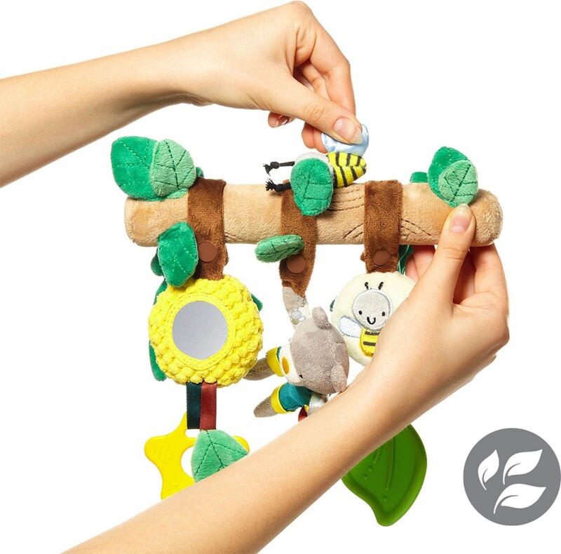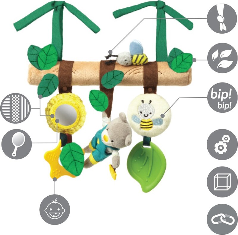 Hračka poskytuje dieťatku pocit bezpečia a podporuje emocionálny rozvoj prostredníctvom prvkov reagujúcich na interakciu. Skladá z niekoľkých častí - prvkov, ktoré sa dajú premiestňovať a oddeľovať. To umožňuje dieťatku učiť sa priestorovému mysleniu. Mäkké silikónové hryzačky, ktoré sú súčasťou hračky, upokojujú podráždené ďasná počas toho, ako rastú prvé zúbky. Pískací zvuk hračky vzbudzuje záujem ukazujúci vzťahy príčiny a následku. Šuštiace prvky ukryté v liste zaujmú dieťatko a upútajú jeho pozornosť. Bezpečné zrkadielko umožňuje dieťatku zoznámiť sa s vlastným obrazom. Jemné slučky a veľký počet vyčnievajúcich prvokov stimulujú zmysel dieťatka pre hmat.