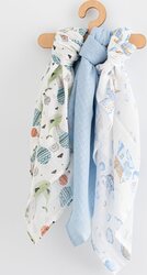 Bavlnené detské plienky New Baby sú nepostrádateľnou súčasťou výbavičky pre bábätko. Balenie obsahuje 3 ks. Dve plienky s obrázkami a jedna jednofarebná. Vhodne zvolené farby a obrázky pre chlapčekov.
