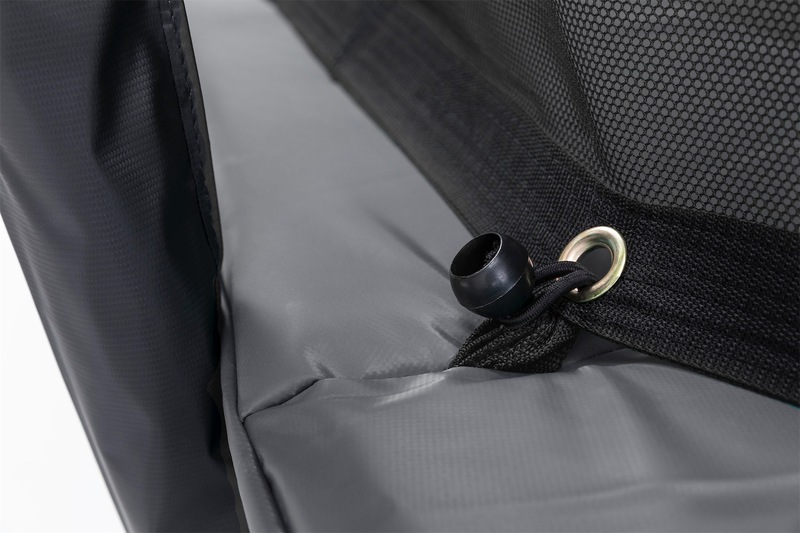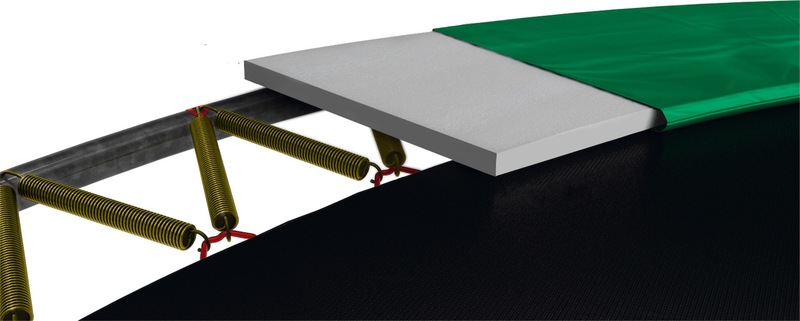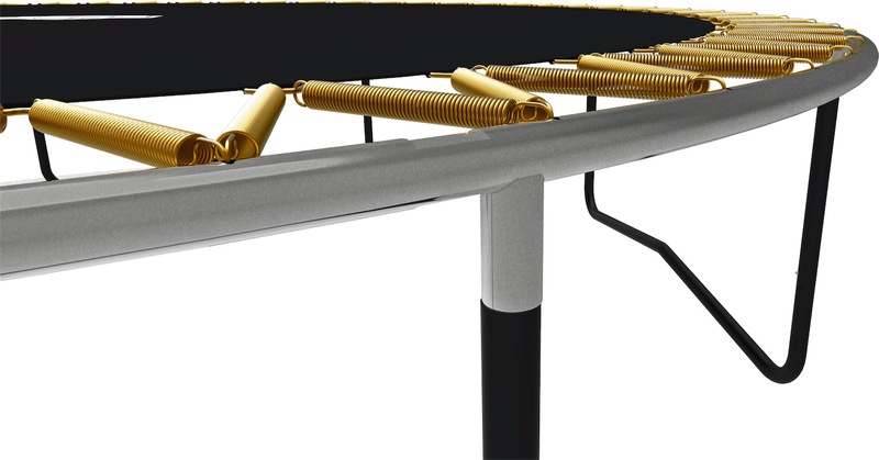 Vysoký počet silných pružín (o 30% pružín viac v porovnaní so štandardnými trampolínami!) Sa vďaka novému postupu nasadzuje pri montáži oveľa ľahšie (červené oko pružiny na červenú značku na ráme). Pružiny sú navyše vybavené veľmi odolným zinkovaním, ktoré zaisťuje vynikajúce antikorózne vlastnosti.