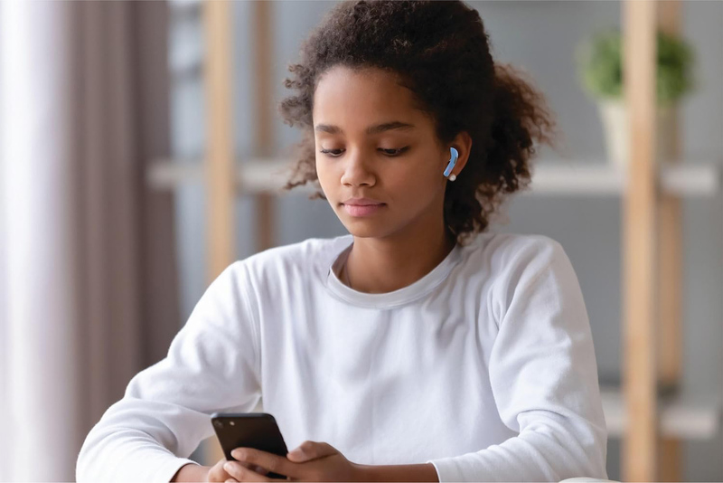 Tieto ľahké bezdrôtové slúchadlá sú kompatibilné so všetkými smartfónmi, tabletmi a ďalšími prehrávačmi s technológiou Bluetooth. Dotykové ovládanie a mikrofón na každom slúchadle umožňujú prijímať hovory a ľahko ovládať hudbu (prehrávanie/pauza/nasledujúca/predchádzajúca). Kompaktné puzdro, ktoré sa ľahko zmestí do vrecka, slúži nielen na uschovanie slúchadiel, ale predovšetkým na ich nabíjanie.
