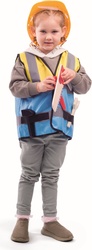 Na stavenisku je dnes rušno. Malí stavitelia si môžu obliecť detský kostým staviteľa a pustiť sa do práce pri pokladaní tehál, miešaní cementu a mnohých ďalších činnostiach, vždy je čo robiť. Súčasťou tejto detskej sady je fluorescenčná žlto-modrá vesta, drevená píla, skrutkovač, hasák, kladivo, ochranné okuliare a preukaz.