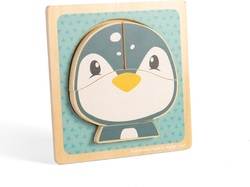 Puzzle s obrázkom tučniaka je ideálnou hračkou pre najmenšie deti, ktoré začínajú objavovať radosť z riešenia jednoduchých hádaniek. Táto sada sa skladá zo štyroch drevených vkladacích dielikov s hravým motívom tučniaka, ktorý je príťažlivý pre malé deti. Podporuje ich kognitívny a motorický vývoj. Každý dielik je starostlivo vyrobený a spracovaný tak, aby bol pre deti ľahko uchopiteľný. Vďaka zaobleným hranám je bezpečný. Hračka podporuje nielen rozvoj detských zručností, ale taktiež poskytuje príležitosť pre interakciu medzi dieťaťom a jeho rodičmi. Spoločné riešenie hádaniek môže posilniť puto medzi dieťaťom a dospelým a zároveň motivovať detskú fantáziu. Vyrobené z vysoko kvalitných, zodpovedne získaných materiálov. Spĺňa aktuálne európske bezpečnostné normy. Obsahuje 4 dieliky puzzle.
