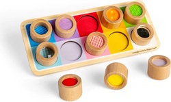 Deti s touto dhovou senzorickou doskou objavujú nové vzory a textúry. Hračka sa skladá z drevenej dosky s farebnými otvormi a desiatich valcovitých dielikov, ktoré nájdete napr. vrúbkovaný silikón, plsť, zrkadlo… Táto senzorická doska deti naučia rozdiely medzi rôznymi textúrami, medzi veľkosťami a farbami. Deti si pri hre precvičia zručnosť a motoriku.