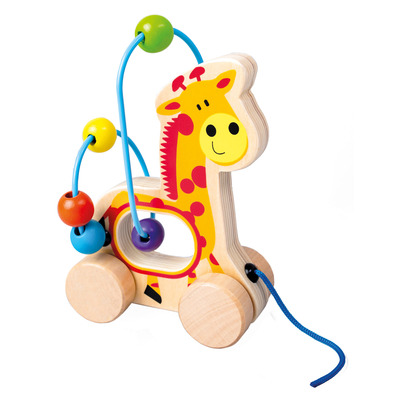 - Ťahacia hračka s motívom žirafy, ktorá pomáha deťom s ich prvými krôčikmi a cvičením rovnováhy.