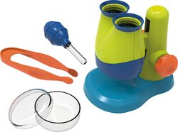 Tento mikroskop je vďaka tzv. stereo optike obzvlášť vhodný pre najmenšie deti, ktoré ešte nevedia privierať jedno oko. Môžu sa tak pozerať do mikroskopu rovnako ako do binokulárneho ďalekohľadu oboma očami.