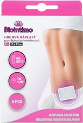 Tepelná náplasť Biointimo na úlavu od menštruačnej bolesti je samolepiaca, samozahrievacia, jednorazová zdravotnícka pomôcka velkosti 10x13 cm, množstvo v balení 3 ks.