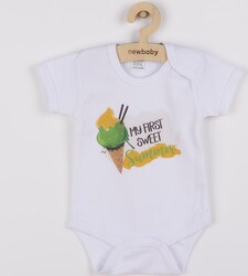 Originálne bavlnené dojčenské body s krátkym rukávom New Baby s nápisom MY FIRST SWEET Summer a obrázkom chutnej zmrzlinky.