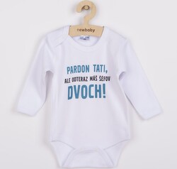 Originálne bavlnené dojčenské body s dlhým rukávom New Baby, s vtipným nápisom PARDON TATI, ALE ODTERAZ MÁŠ ŠÉFOV DVOCH!