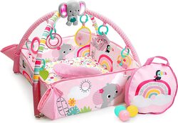 Keď dieťa vyrastie, môže si samo precvičovať motorické zručnosti púšťaním loptičiek zo striešky alebo kotúľaním či podávaním loptičiek sem a tam! Pre menšie bábätká sa hracia deka rozloží celá, kde dieťatko môže stráviť čas na chrbátiku a hrať sa s hračkami na hrazdičke alebo sa s nimi zahrať na brušku pri podpore s vankúšikom, ktorý je tiež súčasťou. Veselý sloník svieti a hrá hudbu viac ako 20 minút a samozrejme si ho môžete zobrať so sebou aj na cesty.