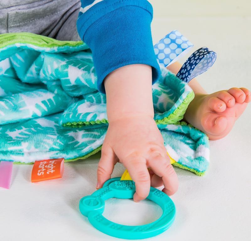 BRIGHT STARTS Maznacia dečka na C krúžku Little Taggies palmy 0m+
