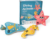 Precvičte si svoje potápačské schopnosti s týmito zábavnými neoprénovými zvieratami. Súprava týchto morských zvierat je špeciálne určená na použitie vo vode! Zvieratá sú vyrobené z neoprénu a vyplnené pieskom, takže ľahko klesnú ku dnu. Poslaním tejto hry je umožniť deťom baviť sa bez chytrých telefónov a tabletov. V sade sú 3 zvieratá, priemer každého je cca 14 cm. Určené pre deti od 6 rokov.