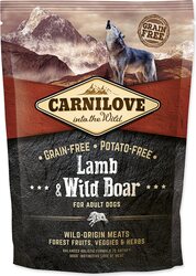 Superprémiové kompletné krmivo bez obilnín a bez zemiakov pre šteňatá veľkých plemien (od 25kg, 3-20 mesiacov) Navrhnuté v súlade s pôvodnou prirodzenou skladbou potravy U šteniat veľkých plemien je veľmi dôležité poskytnúť správnu výživu v období rastu. Tato životná fáza je kritická na prísun potrebných živín, proteínov a tukov v správnych pomeroch. Carnilove Puppy Large je navrhnutý v súlade s pôvodnou prirodzenou skladbou potravy psov a ich predchodcov vlkov. Z veľkej časti ju tvorí ulovená korisť- svalovina, vnútornosti a kosti, doplnená o správny pomer ovocia, zeleniny a bylín. Tieto komponenty šteňatá veľkých plemien potrebujú vo fázy rastu pre zdravý vývoj kostry, kĺbov svalstva a nervovej sústavy. Základnú zložky receptúry tvorí mäso a olej z nórskeho lososa, ktorý dodáva potrebný obsah omega mastných kyselín pre kvalitu srsti a kože a zdravý vývoj nervovej sústavy. Losos je zdrojom vysoko stráviteľných proteínov. Je bohatým zdrojom omega-3 nenasýtených mastných kyselín, ktoré pozitívne ovplyvňujú mentálny vývoj, kardiovaskulárnu sústavu a metabolizmus (znižujú obsah krvného cukru). Losos má pozitívny vplyv na kvalitu a vzhľad srsti a kože. Moriak je bohatým zdrojom stráviteľných proteínov s vysokým obsahom stopových prvkov, najmä zinku. Ďalej obsahuje vitamíny B3 a B6, ktoré ovplyvňujú činnosť mozgu, svalový tonus a sú potrebné pre zdravý rast. Carnilove sú krmiva navrhnuté s rešpektom k pôvodnej prirodzenosti psov. Široké spektrum dôkladne vybraných zdrojov mäsa divokého pôvodu ako sob, kačka, bažant, moriak, jahňacie, diviak a losos odpovedá skladbe prirodzene ulovenej koristi a zaisťuje potrebný prísun dôležitých aminokyselín. Lesné ovocie, zelenina, divoké bobule a byliny dodávajú potrebné prírodné vitamíny, antioxidanty a ďalšie nenahraditeľné živiny. Zloženie Lososová múčka (25%), morčacia múčka (20%), žltý hrach (18%), kurací tuk (chránené tokoferoly 9%), lososový proteín 6%), hydrolyzovaný kurací proteín (5%), tapiokový škrob (5%), jablká (3%), kuracie pečene (3%), lososový olej (2%), mrkva (1%), ľanové semienko (1%), cícer (1%), hydrolyzované schránky rakov (zdroj glukosaminu, 0,031%), extrakt z chrupaviek (zdroj chondroitinu, 0,019%), pivovarské kvasnice (zdroj mannan-oligosacharidov, 0,018%), koreň z čakanky (zdroj frukto-oligosacharidov, 0,012%), juka schidigera (0,011%), morská riasa (0,01%), psyllium (0,01%), tymian (0,01%), rozmarín (0,01%), oregano (0,01%), brusnice (0,0008%), čučoriedky (0,0008%), maliny (0,0008%).