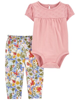CARTER'S Set 2dielny body kr. rukáv, legíny Pink Embroidery dievča 18m