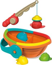 Štyri šťastné rybičky čakajúce na vylovenie a umiestnenie do člna podľa svojej farby! Klasická hra prepracovaná tak, aby bola jednoduchá, vhodná pre deti a zábavná pre malé deti, ktorá im umožňuje rozvíjať koordináciu a zdokonaľovať logické myslenie. Hra má rafinovaný dizajn s bledými farbami a je vyrobená z recyklovaného plastu v súlade s prístupom Play For Future. Rybársky prút s magnetickým vlascom, ktorý funguje jednoduchým a intuitívnym spôsobom. So 4 rybičkami, ktoré sa umiestnia do priehradky správnej farby. Košík na zbieranie rýb je zároveň plávajúcou lodičkou, s ktorou sa dieťa môže hrať pri kúpeli.