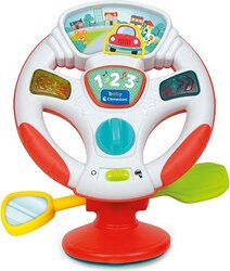 Volant má prísavku, pomocou ktorej je možné ľahko upevniť na rovnú plochu. LED svetlá, zvukové efekty, zvieracie zvuky a roztomilé melódie. Otáčajte volantom doľava, doprava a ozvú sa zvuky motora. Režim motora je možné vypnúť pomocou tlačidla. Spätné zrkadlá a radiaca páka sa pohybujú. Mechanická činnosť pomáha deťom rozvíjať obratnosť a hmatové vnímanie.
