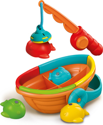 Obsah balenia: Mini loďka s rukoväťou, rybársky prút s magnetom, 4 rybičky.