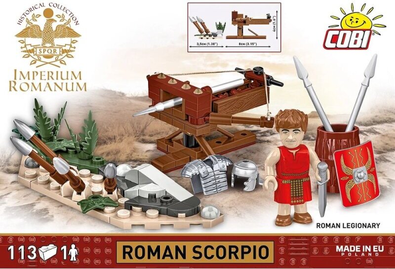 Vstúpte do sveta starodávnych šarvátok, kde každý výstrel mohol rozhodnúť o osude kampane. Sada Rímsky škorpión zo série IMPERIUM ROMANUM od COBI je dokonale reprodukovaný presne navádzaný stroj, pripravený bojovať proti nepriateľom Ríma.