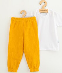 Štýlová a praktická 2-dielna detská súprava New Baby Kindergarten. Súpravička sa skladá z bavlneného trička s dlhým rukávom a mušelínových nohavíc. Veľmi praktický set pre deti aj do škôlky. Bavlnené tričko je veľmi pohodlné už len tým, že je vyrobené z kvalitnej bavlny, bez zapínania, s jemným lemom okolo krčku. Lem nesmie tlačiť, obopínať a tričko sa musí ľahko obliekať cez hlavičku. Mušelínové detské jednofarebné nohavice s moderným dizajnom sú ušité z kvalitného mušelínu. Pre veľmi ľahké obliekanie majú praktický voľný strih, v páse a na nohavičkách je gumička, ktorá netlačí. Nohavice sú veľmi vhodné aj na bežné detské činnosti. Zloženie: 100% bavlna. OEKO-TEX STANDARD 100.Mušelín je jedna z najčistejších, najjednoduchších a najjemnejších tkanín na svete. Je to tkaný priedušný materiál, ktorý si zamilovali deti aj rodičia po celom svete. Mušelín je veľmi odolný a to tak, že bez problémov zvláda opakované pranie. Rozmerová tabuľka-posledná foto.