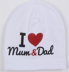 Krásna bavlnená čiapočka New Baby I Love Mum and Dad. Čiapočku zdobí krásny obrázok a je ušitá z priedušného materiálu, preto je vhodná pre jarné i jesenné dni.