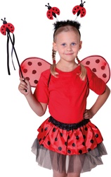 Tento kostým má červenú sukničku s bodkami, ktorá je doplnená čiernou tylovou spodničkou. Ďalej obsahuje čelenku s perím a lienkami, krídla na gumičku a prútik.