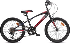Má vypletené lakované hliníkové ráfiky 20" (20 palcov = 50 cm) a nafukovacie plášte. Bicykel má kvalitnú a presnú 6-stupňovú prehadzovačku Shimano Grip Shift od popredného svetového výrobcu cyklokomponent Shimano. Jednoduchým pohybom ruky na riadidlách rýchlo a spoľahlivo zmeníte prevodový stupeň. Prehadzovačka je na bicykli nastavená už z výroby.