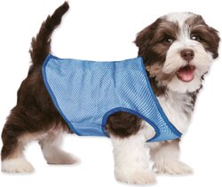 Chladiaca vesta pre malé plemená psov, na podporu termoregulácie pri zvýšenej aktivite. Vesta ochladzuje psa odparovaním vody a možno ju používať opakovane. Udržuje stálu teplotu tela pri športe, tréningu aj počas súťaže. Vhodná aj pre starších psov. Zapínanie na suchý zips. Vyrobená z vysoko absorpčného PVA (polyvinylalkohol) materiálu. Dodávané so znovu uzatvárateľným obalom pre opätovné uloženie vesty. Veľmi nízka hmotnosť vesty.