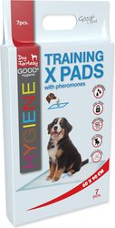 Výchovné podložky s X pre šteňatá a psy.  Špeciálne pridaná substancia feromónov okolo značky X, ktoré cítia iba pes a reaguje na ich receptory. Atraktívna vôňa feromónov priťahuje šteňatá a motivuje k vykonaniu potreby uprostred tréningovej podložky. Použitím tejto podložky sa môžete vyhnúť dodatočnému upratovaniu. Ideálne aj pre staršie alebo inkontinentné psy. Super absorpčné a jednoduché na použitie. Na vnútorné aj vonkajšie použitie.  Veľkosť: 60 x 90 cm Návod na použitie Výchovný proces začnite umiestnením podložky v určenom priestore domu alebo bytu, kde by šteňa malo vykonať svoju potrebu. Uistite sa, že podložka je umiestnená látkovou stranou nahor, teda plastovou stranou na podlahe. Prešívané vrecká pomáhajú zabrániť pretečeniu či presiaknutiu podložky. Akonáhle Vaše šteňa vykoná potrebu na podložke, odmeňte ho pochvalou a maškrtou za dobré správanie. Znečistenú podložku vymeňte za novú. Pri výmene podložky sa uistite, že je položená vždy na rovnakom mieste. Pokiaľ sa šteňa pokúša vykonať potrebu niekde inde ako na podložke, jednoducho ho zdvihnite a premiestnite ho na podložku. Povzbuďte ho na vyprázdnenie na podložke. Na dosiahnutie najlepších výsledkov odporúčame obmedziť pohyb šteňaťa na čo najmenšiu veľkosť priestoru, ako napríklad kuchyňa alebo kúpeľňa. Akonáhle sa šteňa naučí používať podložku vo vnútri domu, presuňte ju do vonkajšieho priestoru. Umiestnite podložku priamo v žiadanej lokalite, kam by sa šteňa malo chodiť venčiť. Podložku vždy vymeňte a uistite sa, že je položená vždy na rovnakom mieste. Podložky prestaňte používať, akonáhle sa šteňa naučí močiť vonku.