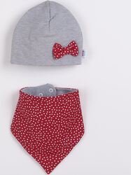 Dojčenská čiapočka so šatkou na krk New Baby Missy sivo-červená 92 (18 - 24 mes)
