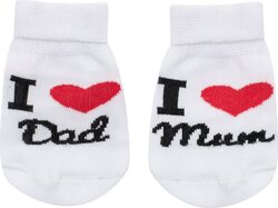 Dojčenské bavlnené ponožky New Baby I Love Mum and Dad biele 56 (0-3m)