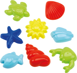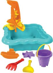 - Sada obsahuje veža s vodným kolesom, loďky, tégliky a bábovky na piesok.