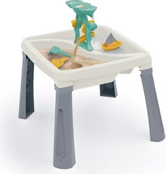 Hrací stolík 3v1, ktorý budú vaše deti milovať.Stolík je vhodný na vnútorné i vonkajšie použitie. Zložením vrchnej dosky, ktorá slúži na písanie a kreslenie, vznikne hracia plocha na hru s vodou alebo pieskom. Naberte vodu do téglikov, vylejte ju vrchného lievika a sledujte, ako voda roztočí lopatky vodného kolesa a padá v kaskádach dole.