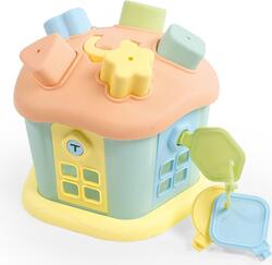 Domček má na streche 5 otvorov na prostrkávanie rôznych geometrických tvarov. Navyše je domček vybavený niekoľkými dvierkami, ktoré sa dajú zamknúť a odomknúť pomocou sväzku 3 kľúčov, ktorý je súčasťou hračky.