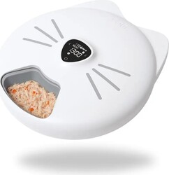 S týmto automatickým kŕmidlom môžete svoju mačku kŕmiť, aj keď nie ste doma. Môžete naprogramovať až šesť rôznych jedál denne av prípade potreby spustiť okamžité kŕmenie – jednoducho pomocou aplikácie v smartfóne . Kŕmidlo je navrhnuté tak, aby bolo bezpečné pre mačky, a je okrem iného vybavené zámkom ovládacieho panelu. LCD displej s dotykovým ovládaním umožňuje nekomplikované ovládanie ako alternatívu k aplikácii. Súčasťou balenia sú dve chladiace batérie, ktoré udržia najmä mokré krmivo dlhšie čerstvé. Automatické krmítko je napájané z elektrickej siete , ale je vybavené priehradkou na núdzové batérie , takže v prípade výpadku prúdu mačka nepríde o jedlo. Zvukové signály sa ozývajú, keď sú batérie takmer vybité, keď je stlačený ovládací panel alebo keď prebehne kŕmenie. Diaľkovo ovládateľné krmítko pre mačky. Všestranné a individuálne použitie: podáva až 6 kŕmení denne, granule, mokré krmivo a maškrty. Digitálne ovládanie: ovládanie prostredníctvom bezplatnej aplikácie Catit PIXI (vhodné iba pre 2,4 GHz Wi-Fi) alebo dotykového LCD displeja. Kŕmenie cez aplikáciu: naplánujte kŕmenie alebo podávajte okamžite po stlačení tlačidla prostredníctvom aplikácie, upozornenie aplikácie na úspešné a neúspešné kŕmenie. Bezpečné pre mačky: so zámkom ovládacieho panelu a otočným mechanizmom. Dlhšie čerstvé: vrátane dvoch chladiacich vložiek pre dlhšiu čerstvosť; v prípade potreby sú ďalšie k dispozícii samostatne. Krmivo aj v prípade núdze: s priestorom pre 4 núdzové batérie, funkčné po dobu 4 dní v prípade výpadku prúdu. Šetrné k batériám: LCD displej sa po 5 minútach prepne do úsporného režimu. Akustické signály: pri úspešnom kŕmení (možno deaktivovať pomocou aplikácie), pri stlačení ovládacieho panela a nízkom stave batérie. Skvelý vzhľad: kreatívny design s mačkou. Je možné zapojiť do zásuvky. Počet porcií: 6 Objem na jednu porciu: 170 ml Druh krmiva: suché a mokré krmivo Funkcia časovača: Áno Napájanie: pripojenie USB + sieťový adaptér, voliteľne na batérie (4x batérie C/LR14, nie sú súčasťou balenia) Farba: biela / šedá Materiál: umelá hmota Rozmery: Kŕmidlo: D 32 x Š 34,5 x V 9,2 cm Misky na krmivo: D 13 x Š 7,5 x V 4 cm Chladiaca batéria: D 27 x Š 14,5 x V 1,5 cm Obsah balenia: Automatické krmítko, 2x chladiaca batéria, USB kábel, napájací kábel, návod na obsluhu. Pokyny pre starostlivosť: odnímateľnú misku je možné umývať v umývačke riadu.
