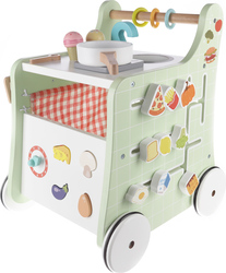 Roztomilé chodítko v tvare kuchynky bezpečne prevedie dieťa jeho prvými krokmi. Na udržanie rovnováhy sa používa drevená rukoväť, ktorej sa dieťa môže držať. Štyri tiché kolieska potom pomáhajú pri učení stability a prvých krokov.Hračka pre začínajúcich kuchárov